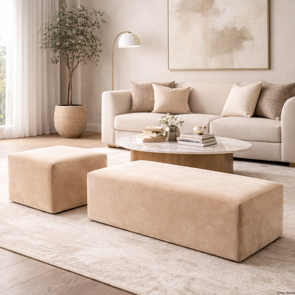 Zestaw puf tapicerowanych do salonu – pufa prostokątna i kwadratowa – design premium PU-3