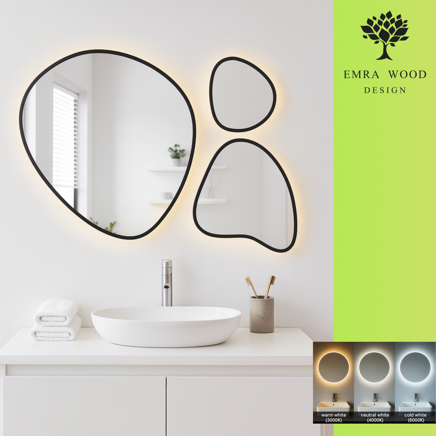 Zestaw trzech luster organicznych w ramie z podświetleniem - FLORA W RAMIE LED