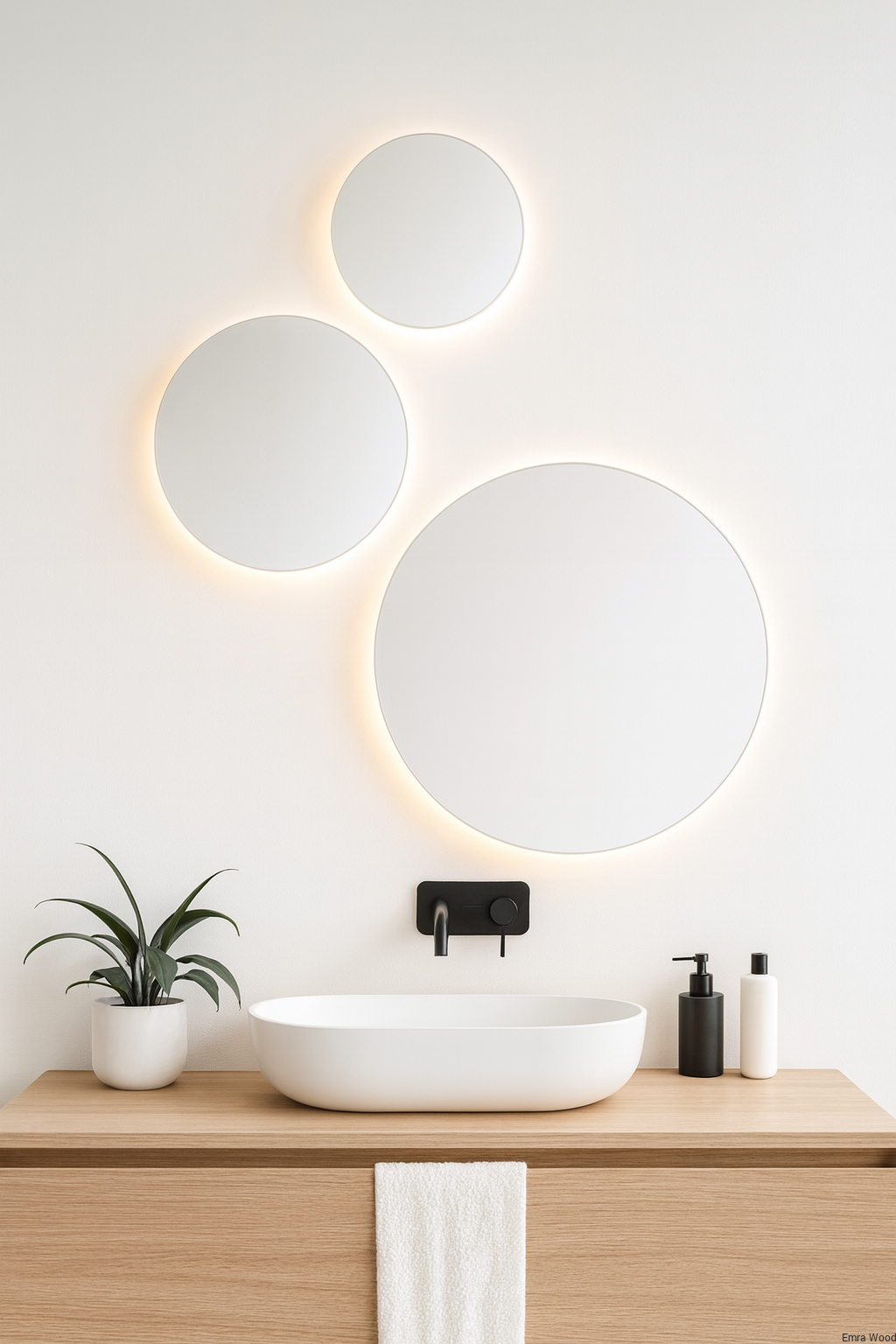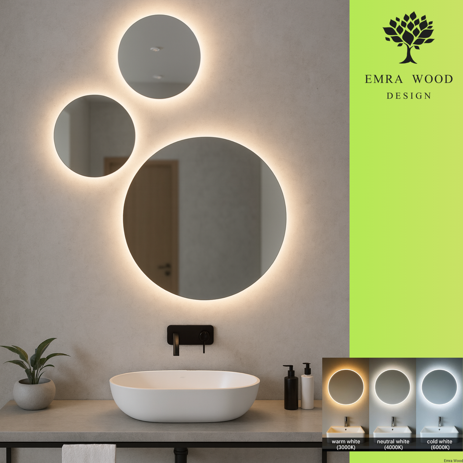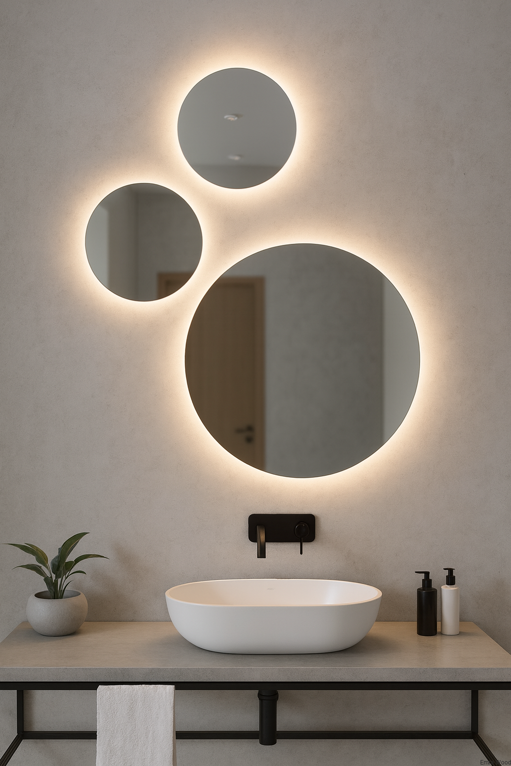 Niezwykły, modny i oryginalny zestaw 3 stylowych luster łazienkowych z podświetleniem LED